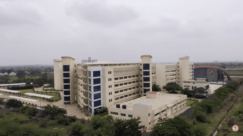 Symbiosis University of Applied Sciences (SUAS), Indore, established in 2016 near the airport, is India's first skill-based university focused on industry-driven education. It offers UG/PG courses in Engineering, Management, and Commerce with 25-acre modern infrastructure, including specialized labs, high placement rates, and partnerships with German industries.
